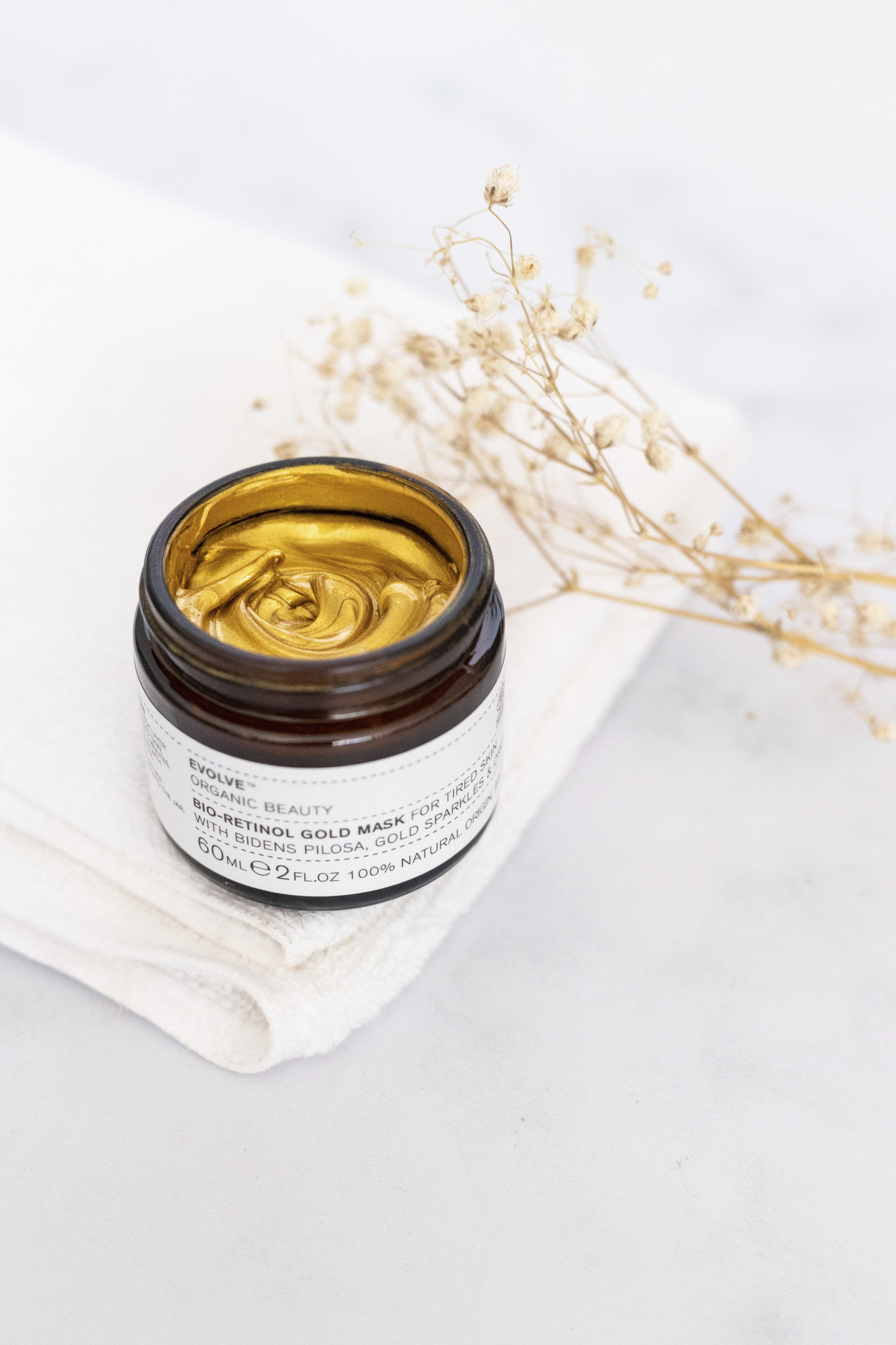 Een prachtig goudkleurig masker met natuurlijke bio-retinol (bakuchiol) en arganolie.